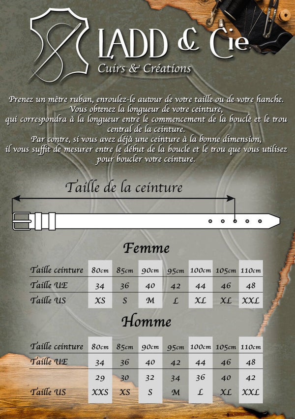 Optez pour l'authenticité avec notre ceinture en cuir fait main. Chaque pièce, minutieusement réalisée, met en avant un savoir-faire incluant repoussage et estampage pour un design unique. Fabriquée en cuir véritable, elle allie durabilité, élégance et confort. Polyvalente, elle s’adapte à tous les styles, classique ou moderne, offrant un produit d’exception au charme artisanal.