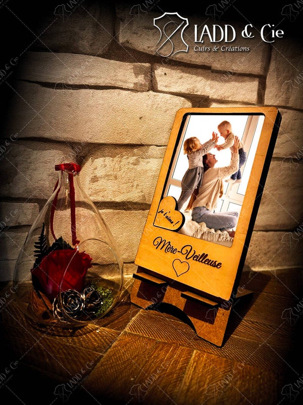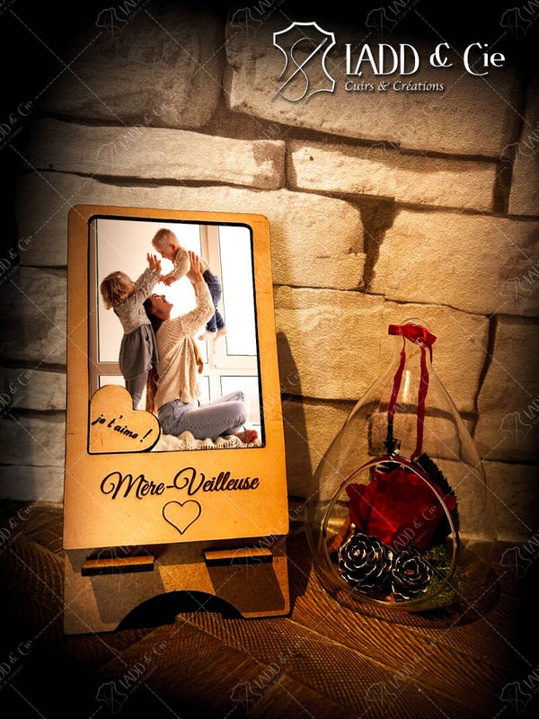 Ce support téléphone cadre photo est non seulement un accessoire pratique pour la maison ou le bureau, mais également un élément décoratif qui apporte une note chaleureuse à n'importe quel espace. Offrez-lui ce cadeau original pour la fête des mères et montrez-lui à quel point elle compte pour vous, tout en lui permettant de garder ses souvenirs au premier plan. Avec ce support, alliez style et utilité, tout en célébrant l'amour inconditionnel d'une mère.